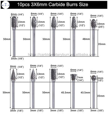 | 10 Stück 3*6mm | 5 x 4 x 0,5 Zoll 3*6mm/0.12*0.24 Zoll (Ca.) Gesamtlänge: 45-50mm Schnittdurchmesser: 1/4" Schaftlänge: 35mm Schaftdurchmesser: 1/8" |